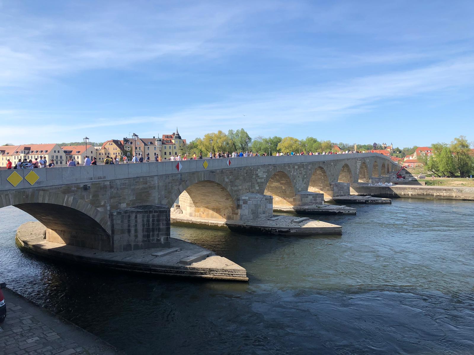 Into the World Heritage town of Regenstadt after weaving through the crowds of walkers and cyclists, the busiest the Donauradweg has been all trjp .A delightful quaint hotel Orpheus, with bowls of easter eggs everywhere yum, our first room was very bohemian I loved it, BUT very noisy from tiny street below us and we had requested a quiet room which they said they’d given us. Next room was very quiet in the main hotel but heating wouldnt work so on third attempt we ended up in a palatial suite with roof top views, chandelers and cathedral views!!! Wow…lucky we’ve given ourselves an extra night here to see Regensburg.