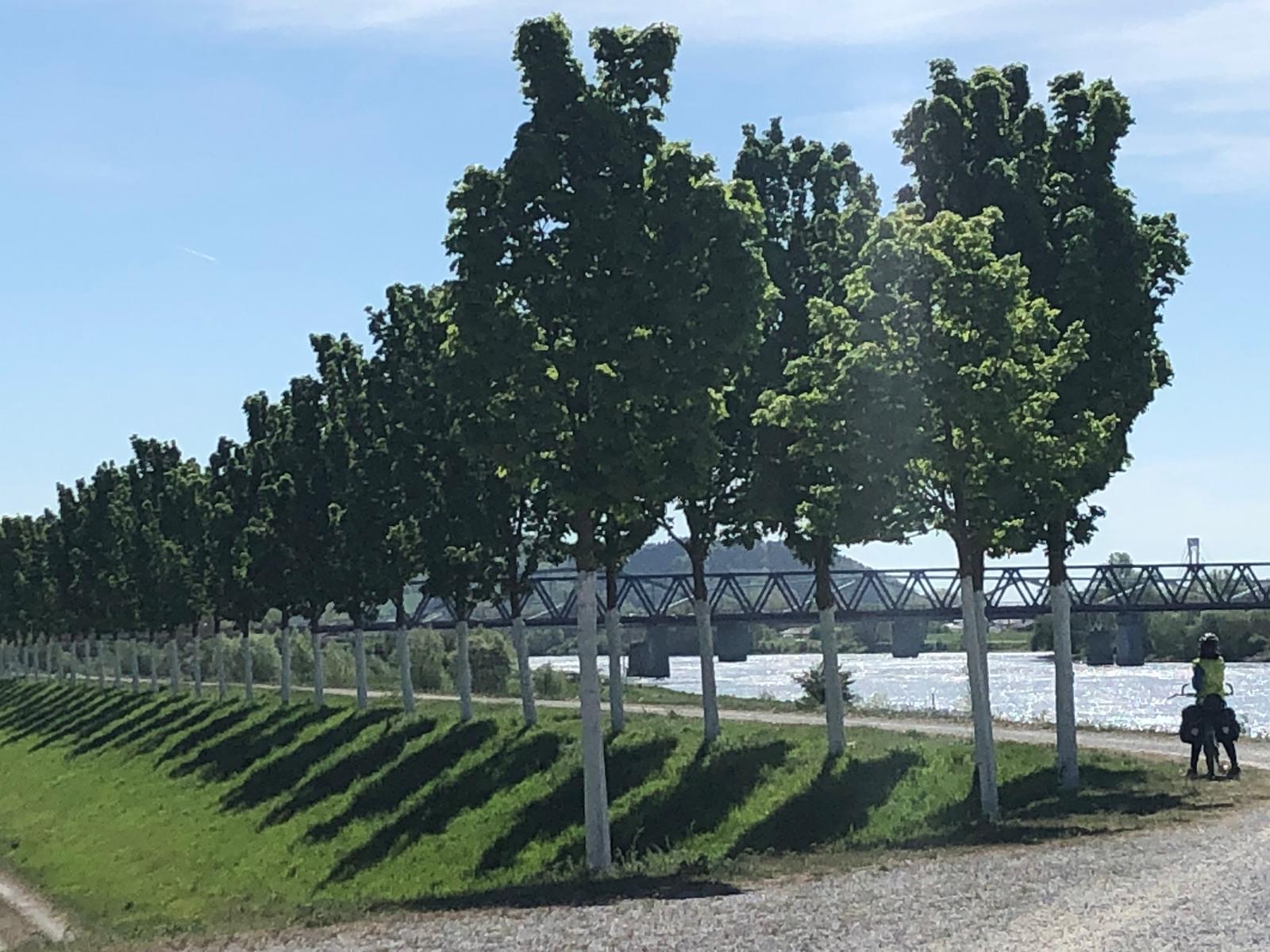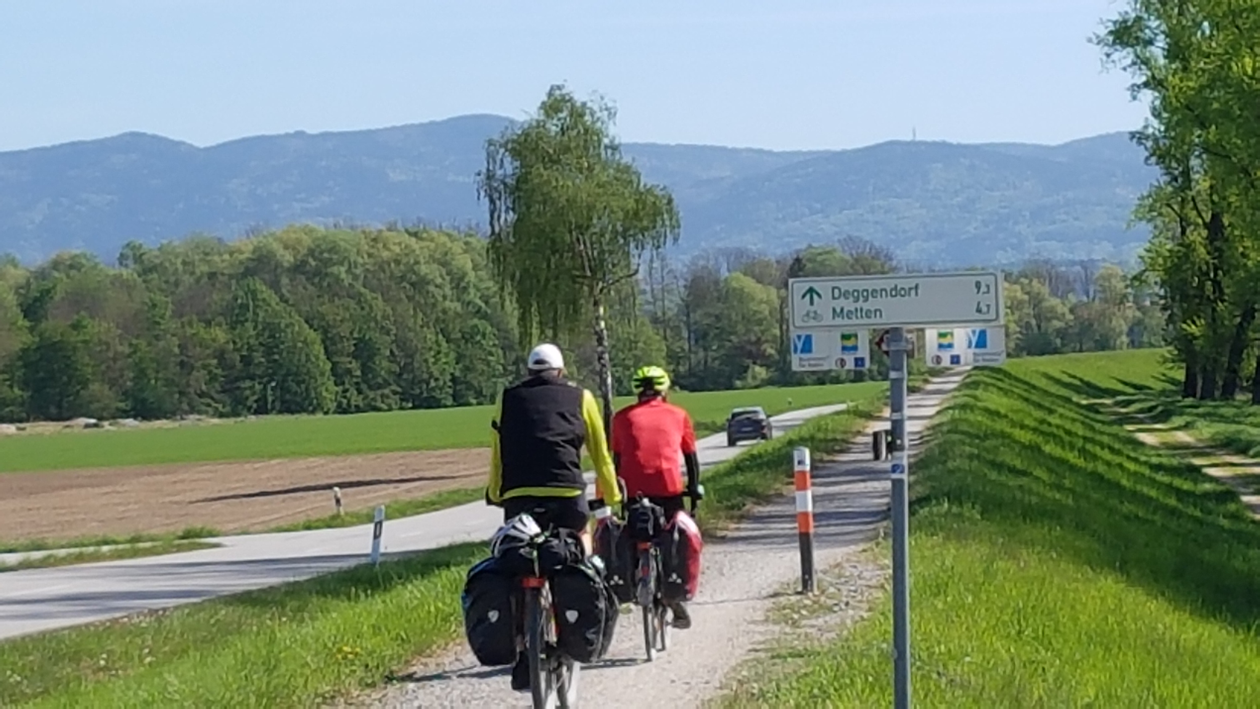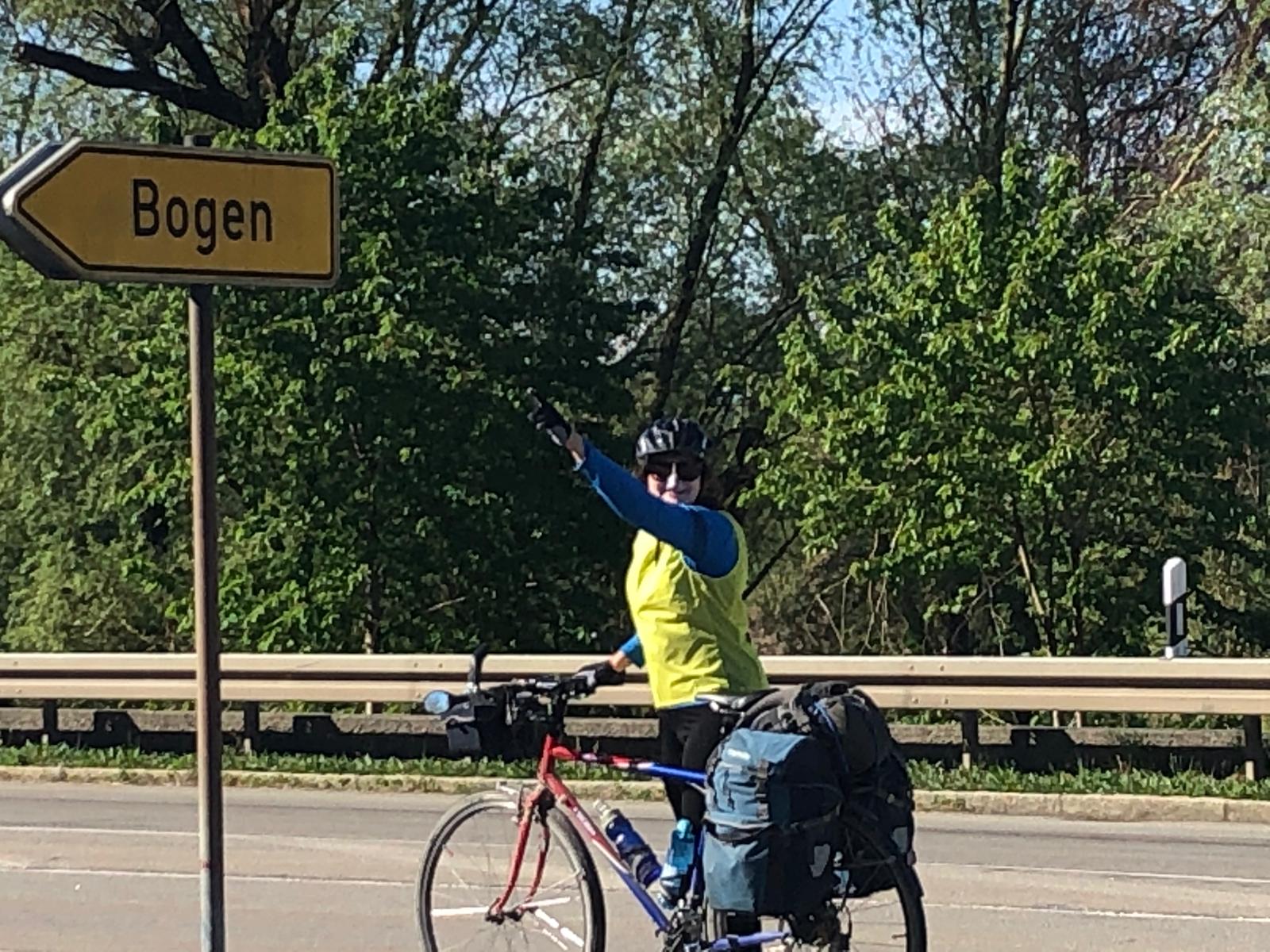 The shorter day didn’t eventuate as their was a huge diversion of the Radweg as they were building more flood dykes.My concern that we were being diverted away from the village we’d booked a Pension in.Luckily we returned to the main route about 3kms from our next village Winzer, phew. The pension I’d booked was in Bergstrasse, yes right up a steep hill to get to it. A tiny elderly lady Frau Steinke offered to help with our bags ….did we look that nackered. A very Germanic pension absolutely spotless with views across the valley. The supermarket to get a picnic dinner was over 1km away but was good to stretch the legs.Frau Steinke went off to sing in the local choir and we could hear them in the Pension, beautiful. May 1st in Bavaria is St Marys day and apparently all of May songs are sung honouring the Virgin Mary.