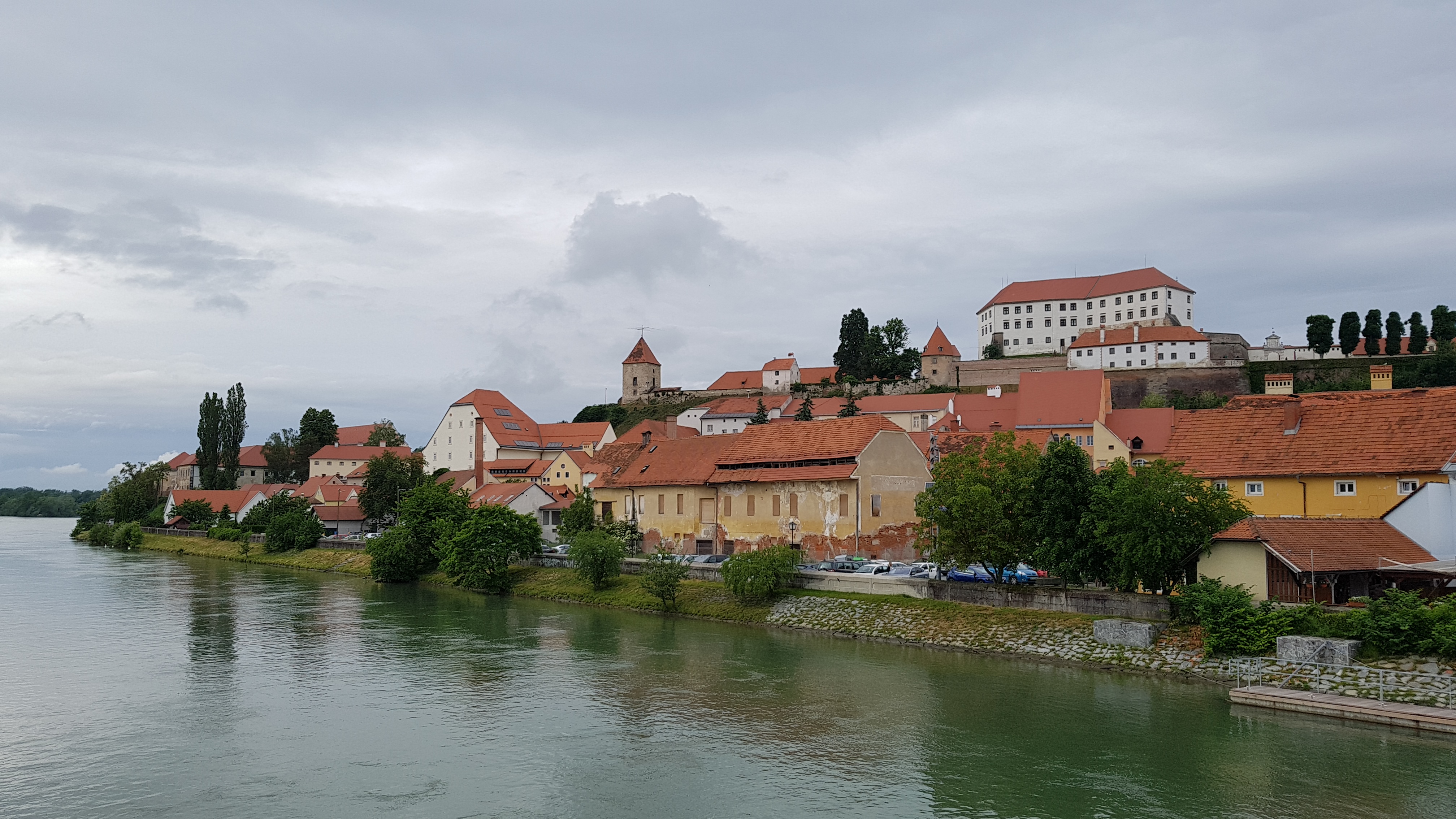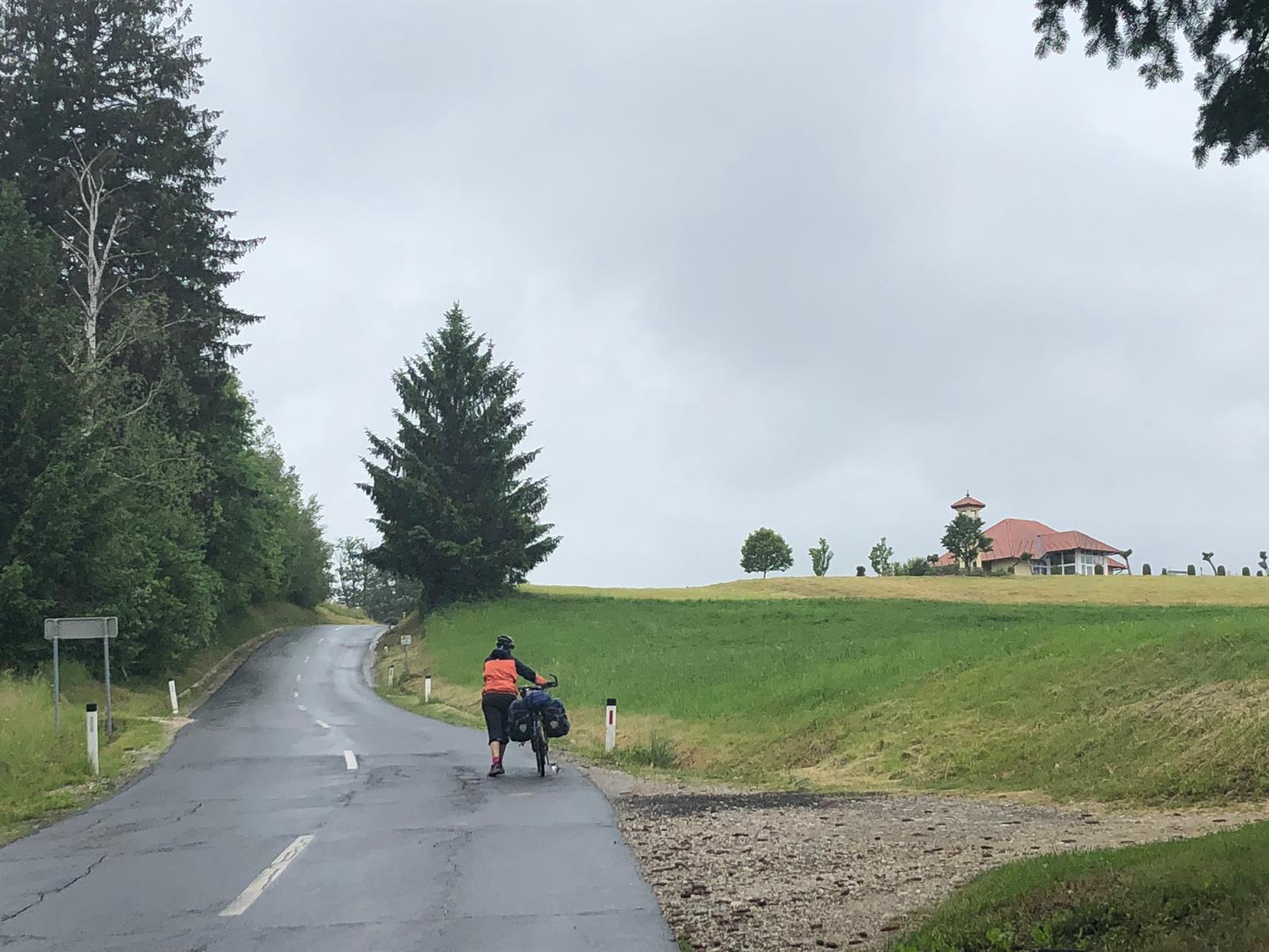 We set off deciding to try and follow routes allowing cyclists on but this meant some elevation through the hills. After a relatively flat 60kms the day before we were’nt really in the mood for hills. Our bike path took us into the the town of Ljutomer where we made the tourist officers day by popping in.She was listening to australian gospel music at the time I did’nt know we produced any!She was very helpful and directed us on to where our route started to Pjut and blessed our bikes for us. She assured us we would have 2 angels flying with us , tnose angels didn’t seem to pick my bike up the hills though!It wasn’t long before the rain started in earnest the headwind began and the hills got steeper, on top of that hubby hadn’t had his morning coffee and there wasn’t any places forthcoming.Eventually we found a large pub in Savci for a welcome coffee and hot chocolate. Yes, Slovakia does normal hot chocolate not the thick sludge of Hungary.