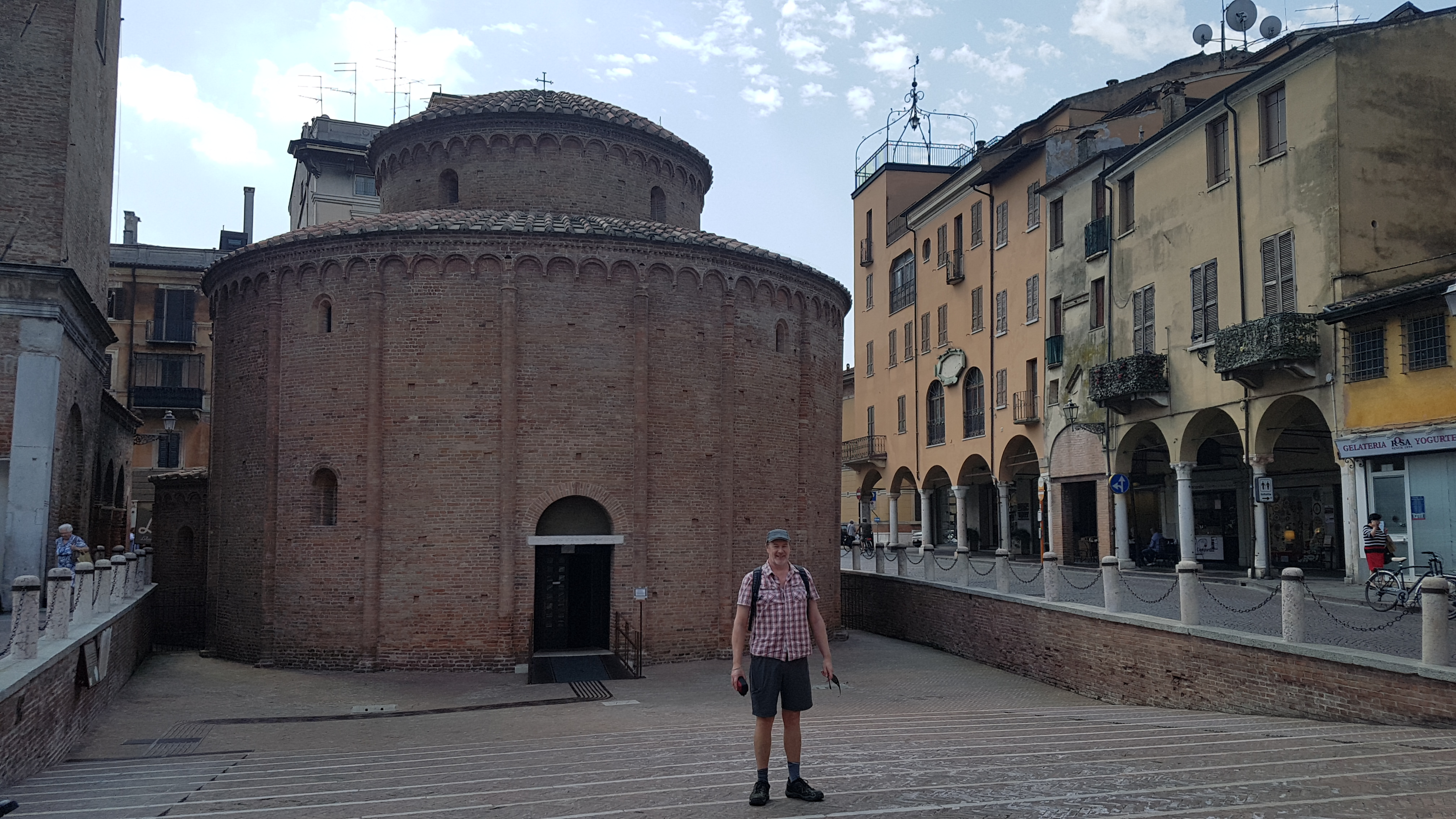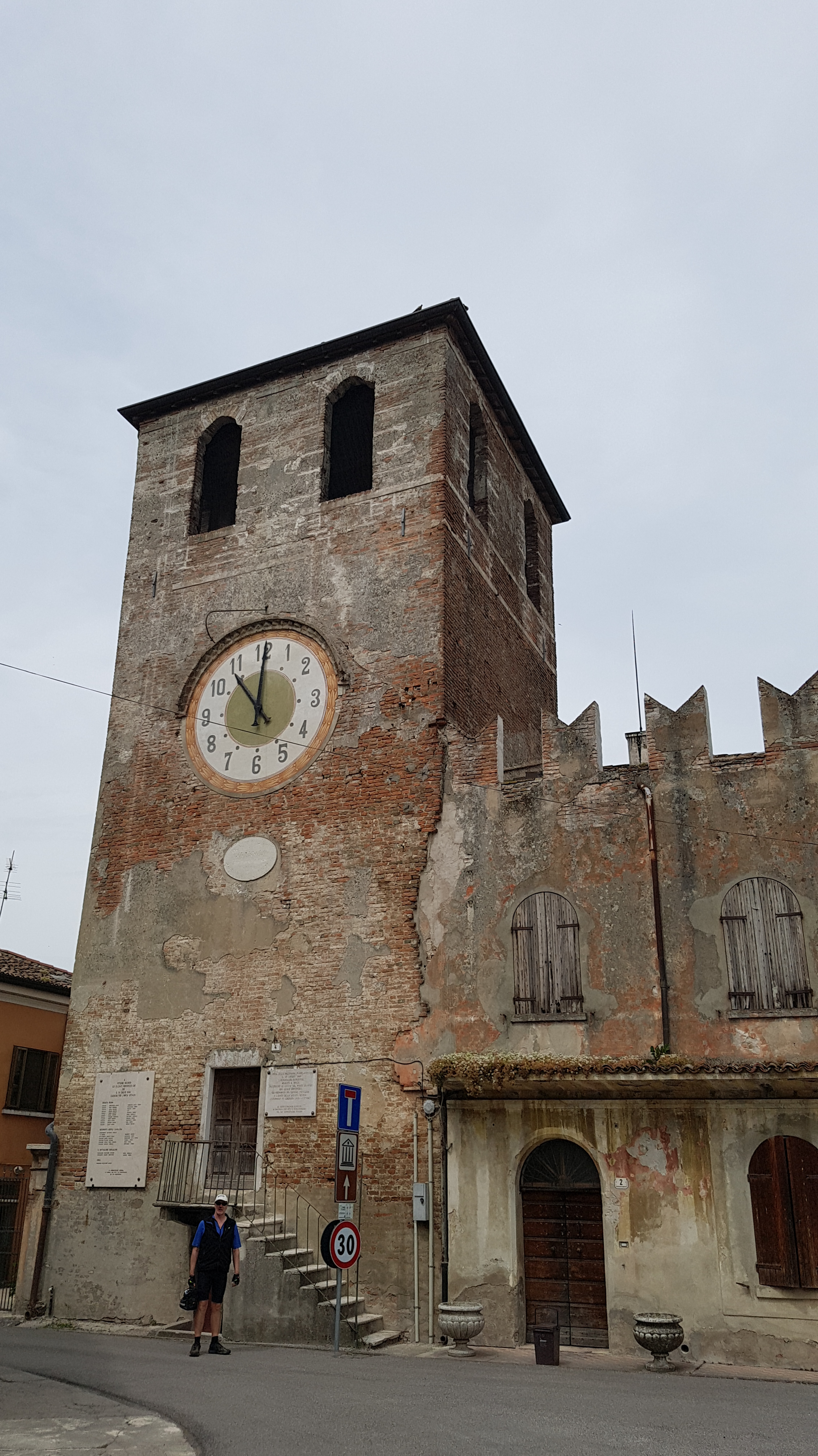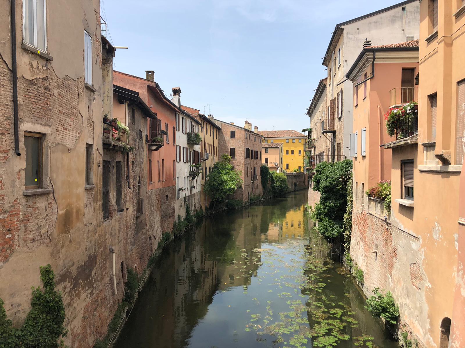 It was an easy ride of 42kms to Mantova but signs were not always that forthcoming. In fact at one point we ended up on a tiny track through the forest, which I’m sure wasnot a cycle route. Coffee and orzo was obtained at a tiny cafe in Governole where the Minimicio river joined the Po and where there was a very odd small castle.We were also given a plate of biscuits with our drinks, that was a first . According to the map we were meant to be cycling through a national park but it seemed more like very smelly farm lands.We saw our first river boat today so it seems the season has started for the ferry slowly going up and down, but not sure if there would be room on the boat for bicycles.Apparently last year it didn’t run at all with the drought . We also saw our first tour group of cyclists, it was a huge group at least 30.
