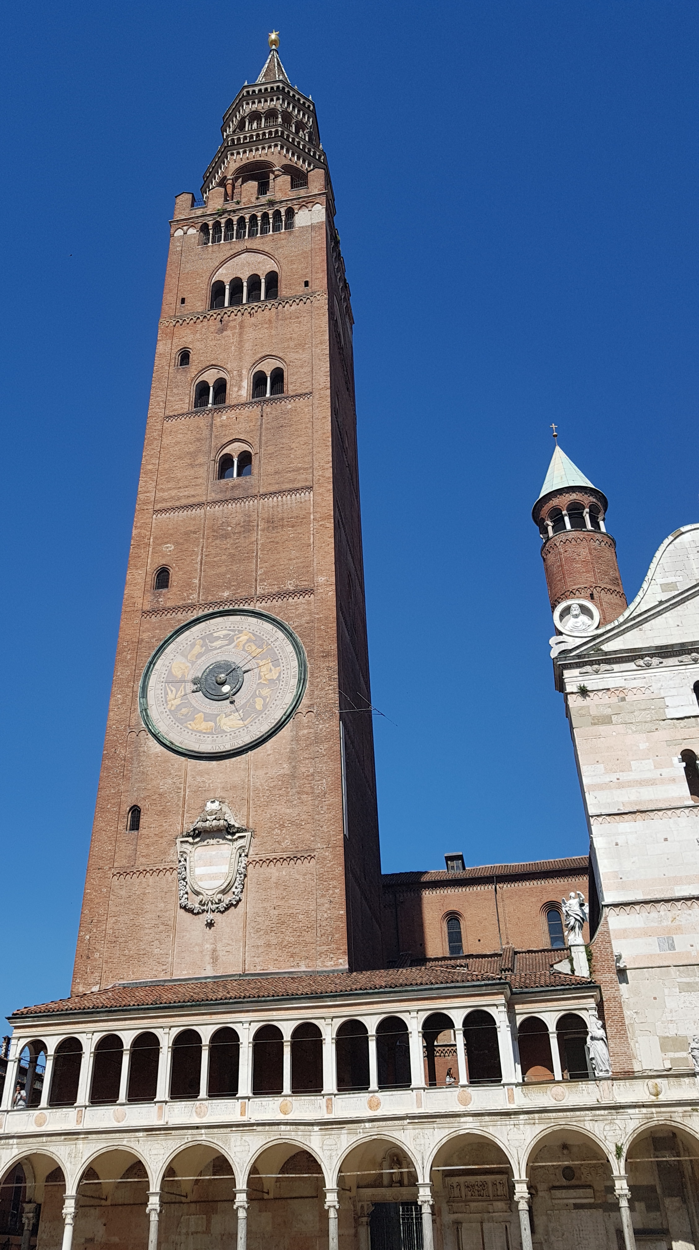 We are staying in a historic hotel right in the city centre.We had more energy today without the humidity so rushed out to climb what was for a long time the highest bell tower in europe 510 steps.Quite incredible that they built this in the 12th century.The tower has a clock whose workings are still operating from the 15th century, its one of those astronomical clocks so tells when eclipses are going to happen etc.Cremona is also famous for violin making which has been part of the tradition of the town since the 1400s. Stradivari had his workshops here and the museum has quite a few of his violins on display. We arrived too late for a recital in the auditorium of one of the historical instruments, which was a shame but they had an incredible dome to go on which gave you the experience of being in the middle of an orchestra.