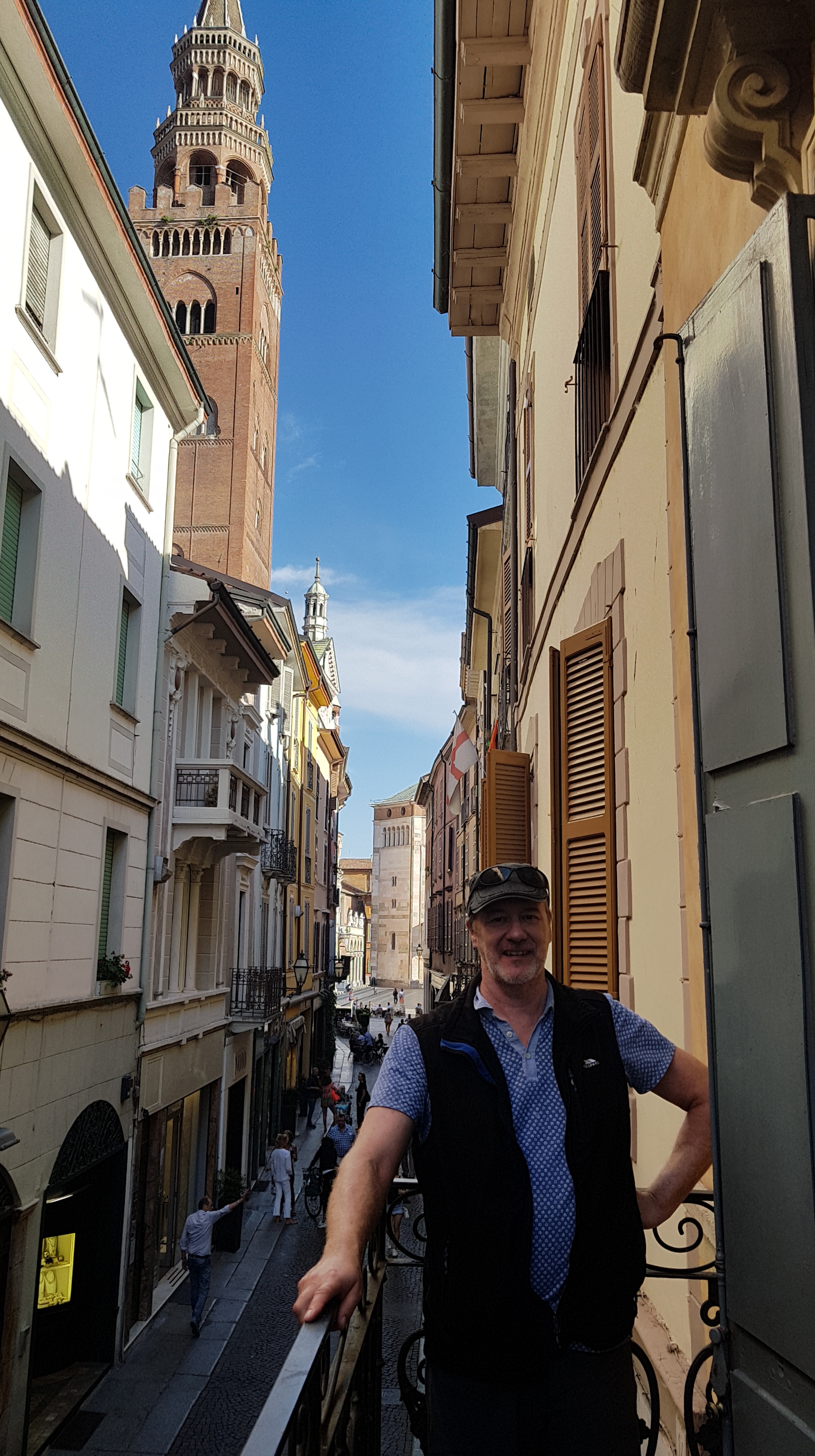 Cremona is a lovely town to wander around, cobblestones and beautiful shops. I’m not looking in any of the shops anymore as I was tempted by a lightweight jacket in Mantova, I was very untempted when I learnt the price 260 euros. Chill time on the balcony enjoying the bustle of the town.Buonasera!