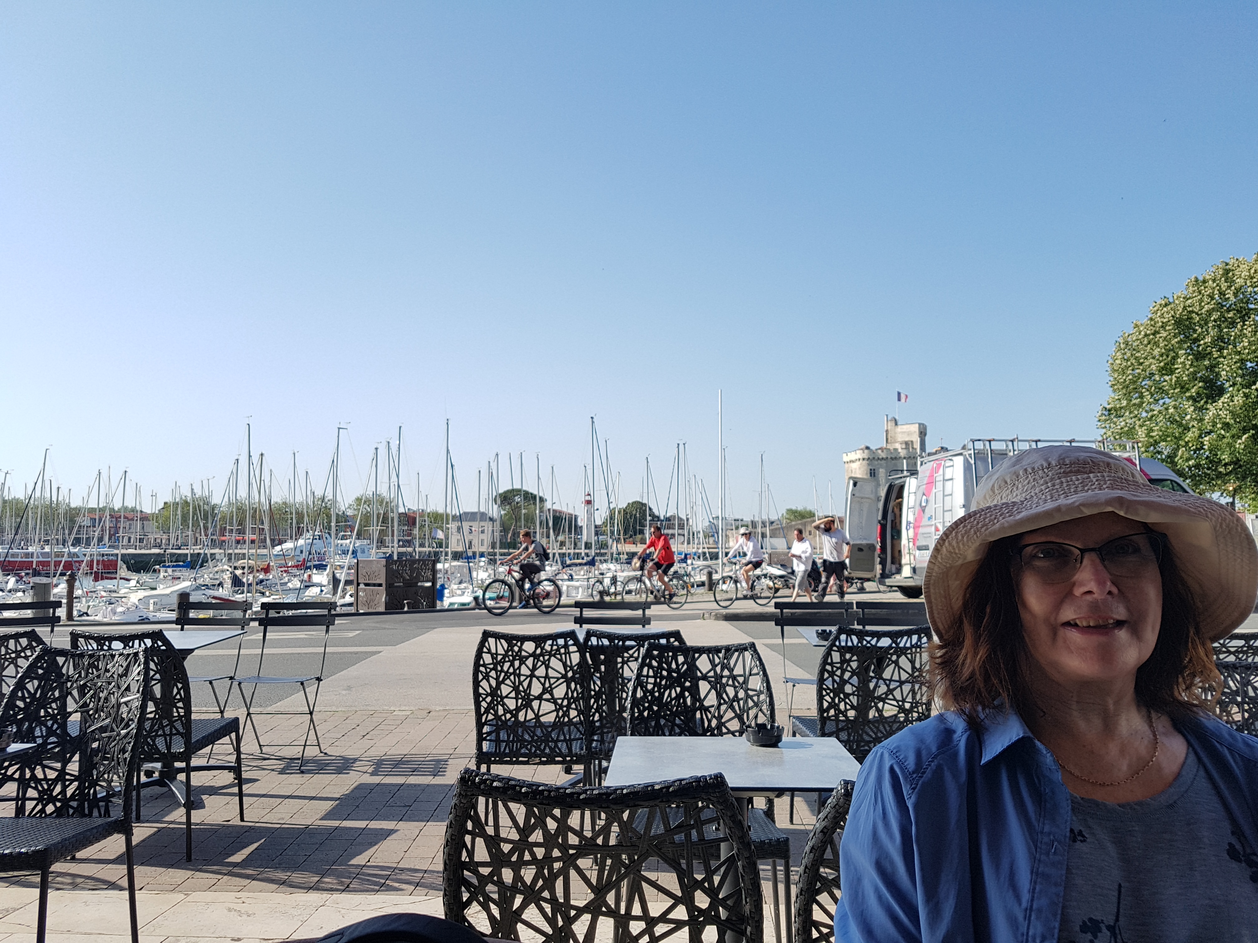 La Rochelle is a beautiful port , surrounded by islands off the coast.Only one hot day was forecast but it has ended up with 2 hot days , with temperatures peaking quite late, it reached 38C yesterday at 8pm and 39C today at 8pm. The owner of the appartment arrived with 2 fans today, alleluia!