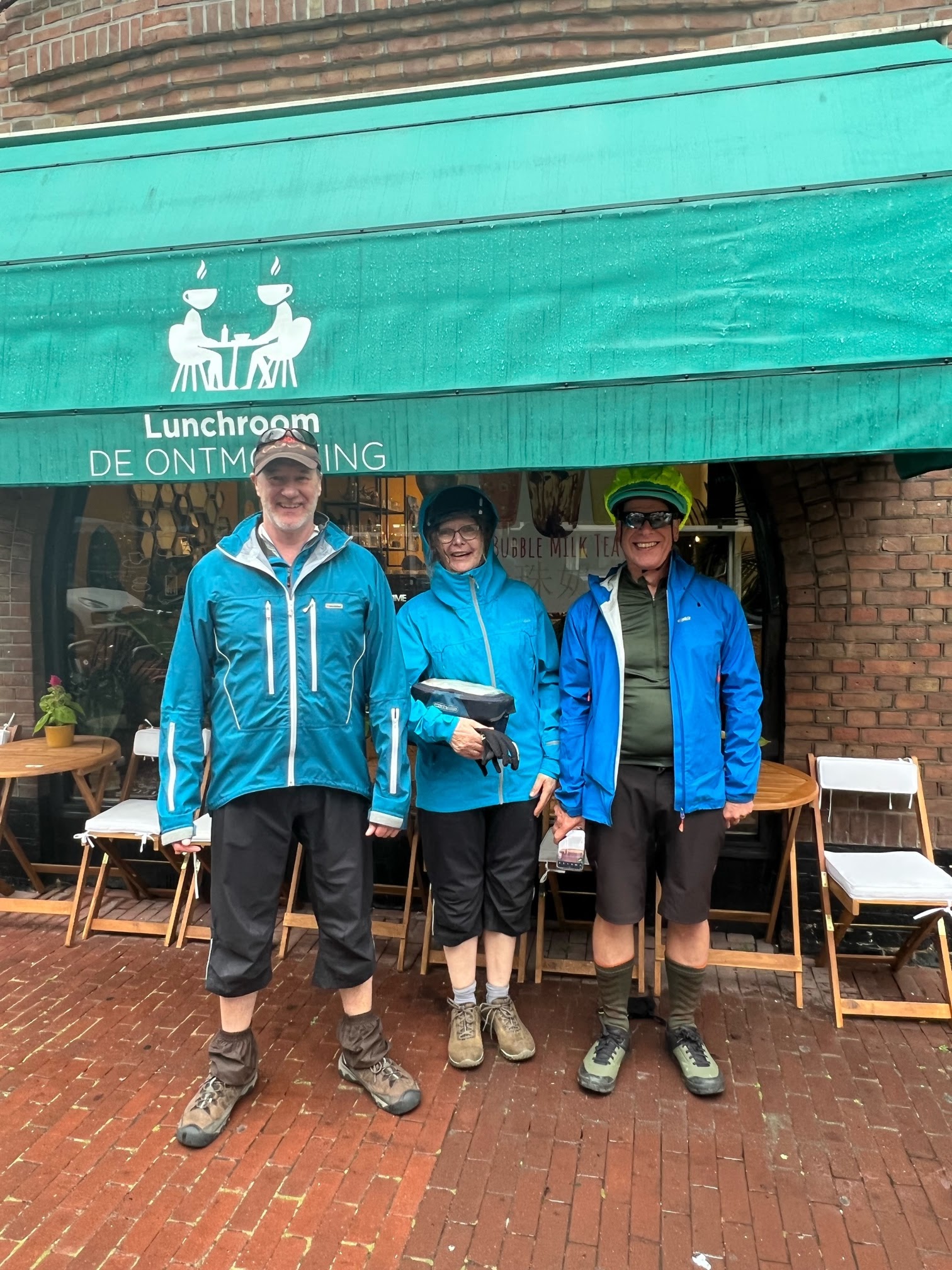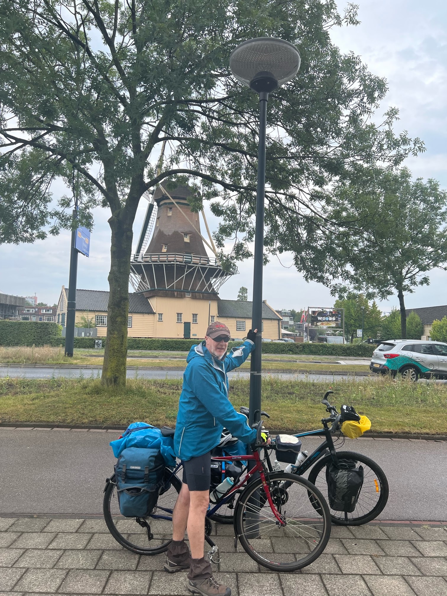 Holland gave us a drizzly welcome after a few minutes of which way we headed to the beach for the cycle paths going north. No sign of any open cafes so on we went, we pulled into a cafe by the beach aftervan hour but no 9am was too early they werent going to open up for us.By 10am Tim was getting a bit desperate for coffee and food I had given up hope.So,imagreed to come away from dunes and sea and turn inland. This of course was a little risky as id taken notes from the map but left it behind as who wants to carry a map you are only using for one day….I had decided to start trying using navigation on your phone but have yet to work out how you do this when its raining.