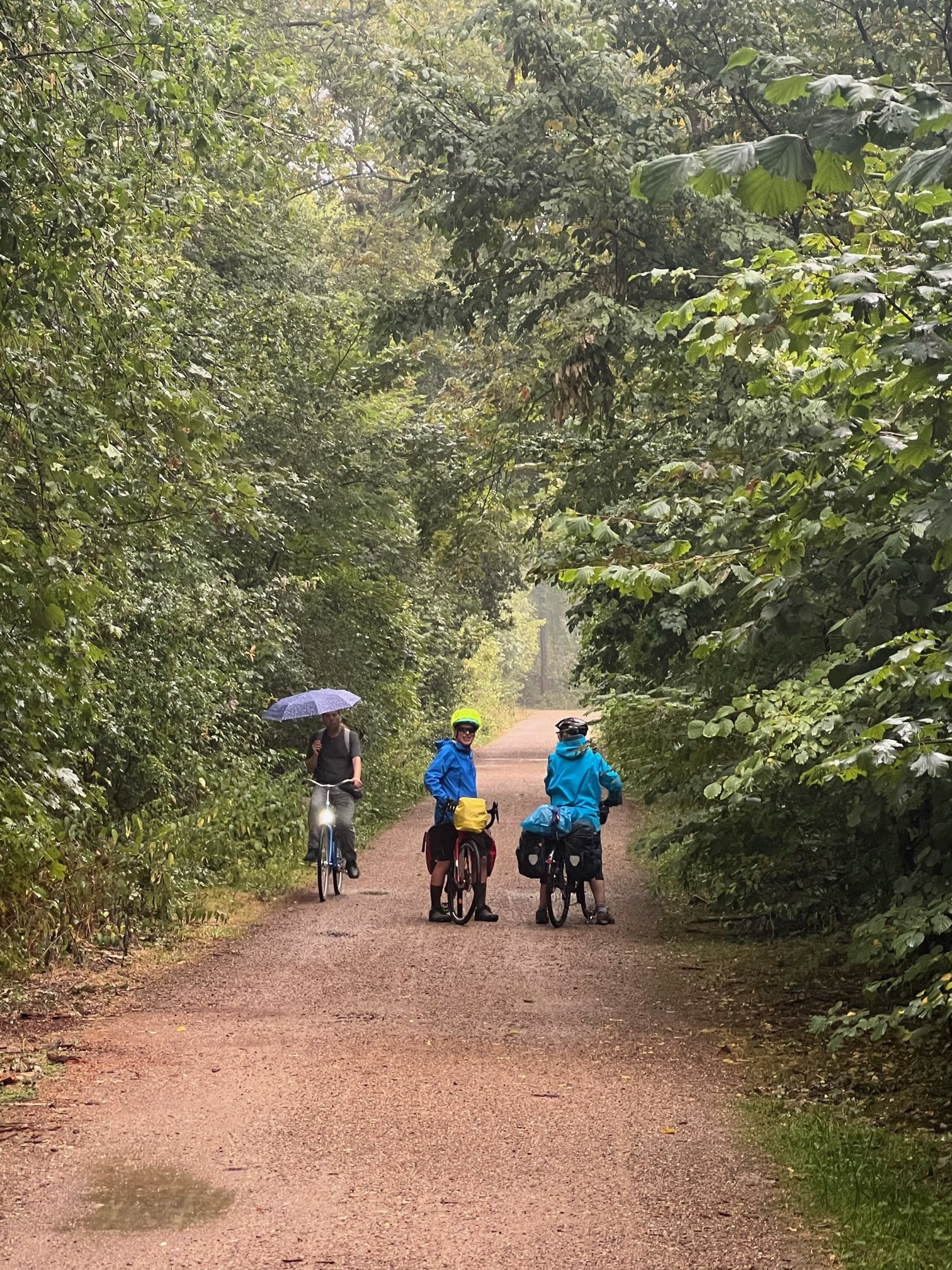 We donned raincoats and setnoff again making our way north to den Haag and then luckily managed to pick up the cycle route we should have been on through beautiful woodlands.