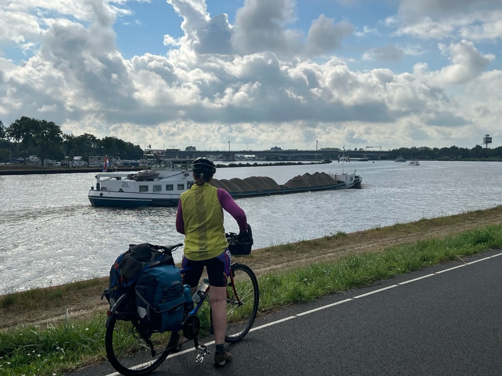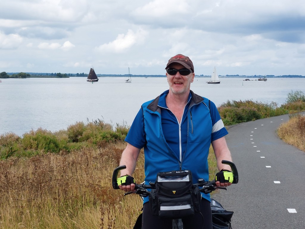 It was a latish start and a few hiccups trying to get onto a long distance cycle way out of Amsterdam heading to Muiden.It was mixed cycling with cycle ways next to roads and even next to a motorway at one point, but eventually we were on dykes with a canal on one side and lakes on the other or cycling under tree lined avenues next to a huge canal.We arrived in Muiden a delightful historic town at the mouth of the river Vecht so a morning tea spotvwas slotted in.We encountered our first Transgender friendly toilet within the cafe/gasthof quite a nice sign half man half woman.It was hard to get moving so we stayed for a while warching boats go through the lock.
