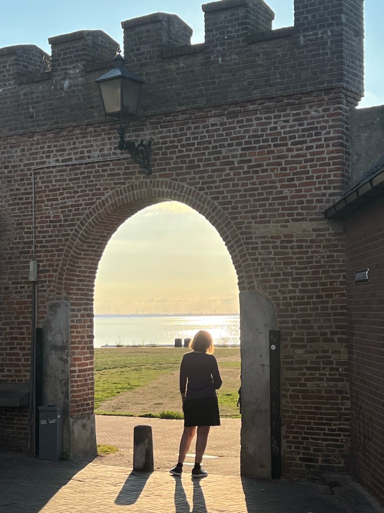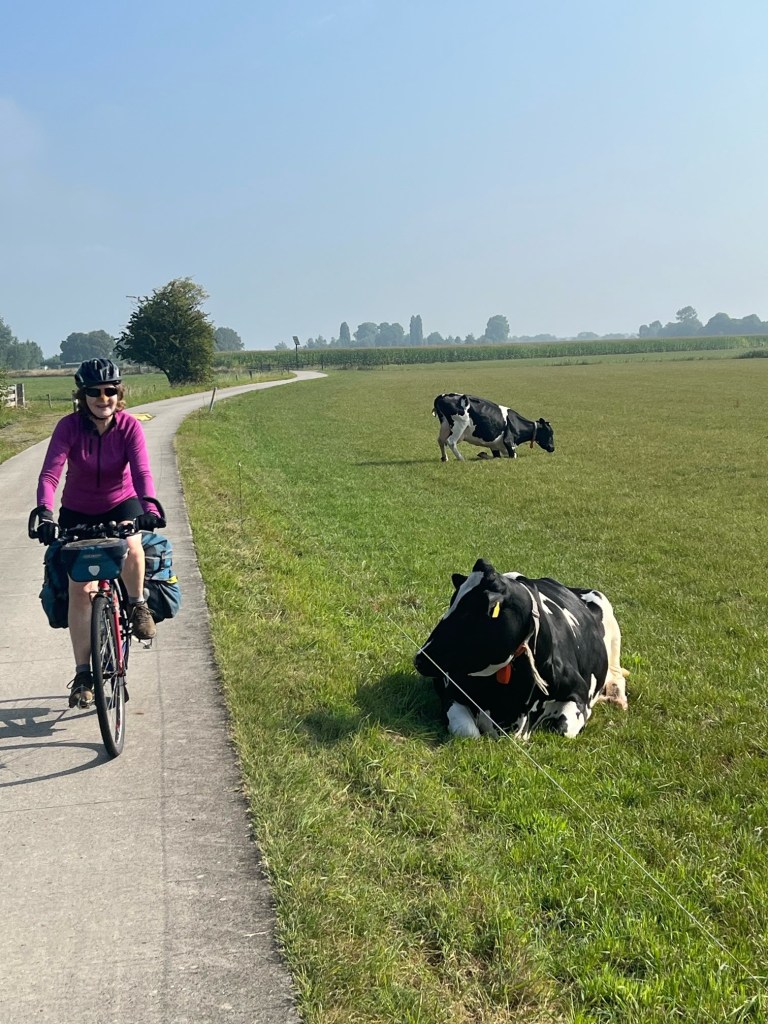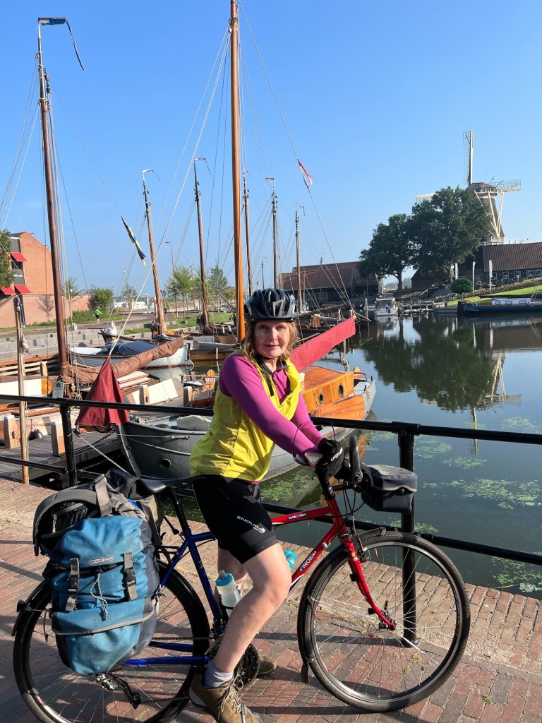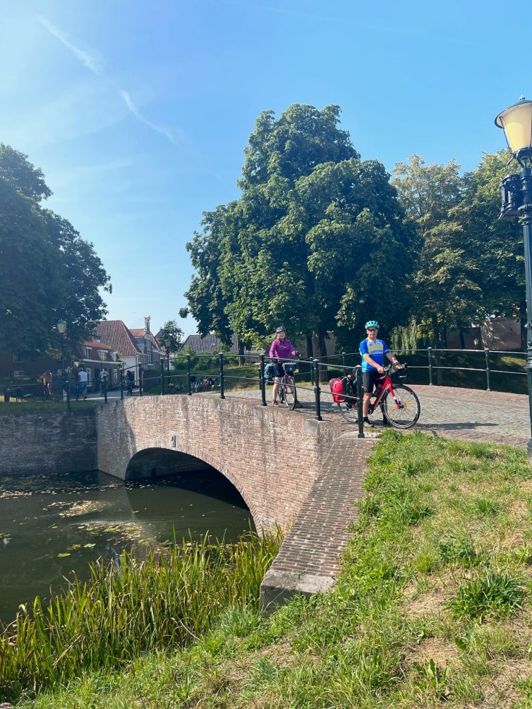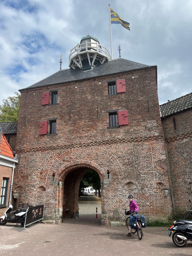 Tim decided his mapout new app on phone could navigate us more successfully. So it was a change of route along the coast , which sounds lovely but in the Netherlands when all you can see is a long path disappearing forever into the distance with a sign saying Zeewold 30kms despondancy sets in as you can sense any hope of a nice lunch fading.We arrived in Zeewold at 3pm. The bakery saved us made us tea and coffee and with a few pastries later we were half recuperated. It was another 12kms further to Harderwjk a bustling beautifulwalled mediavel city.Mick had booked later so he turned his ebike on to continue on as Harderwjk was full not a spare bed.