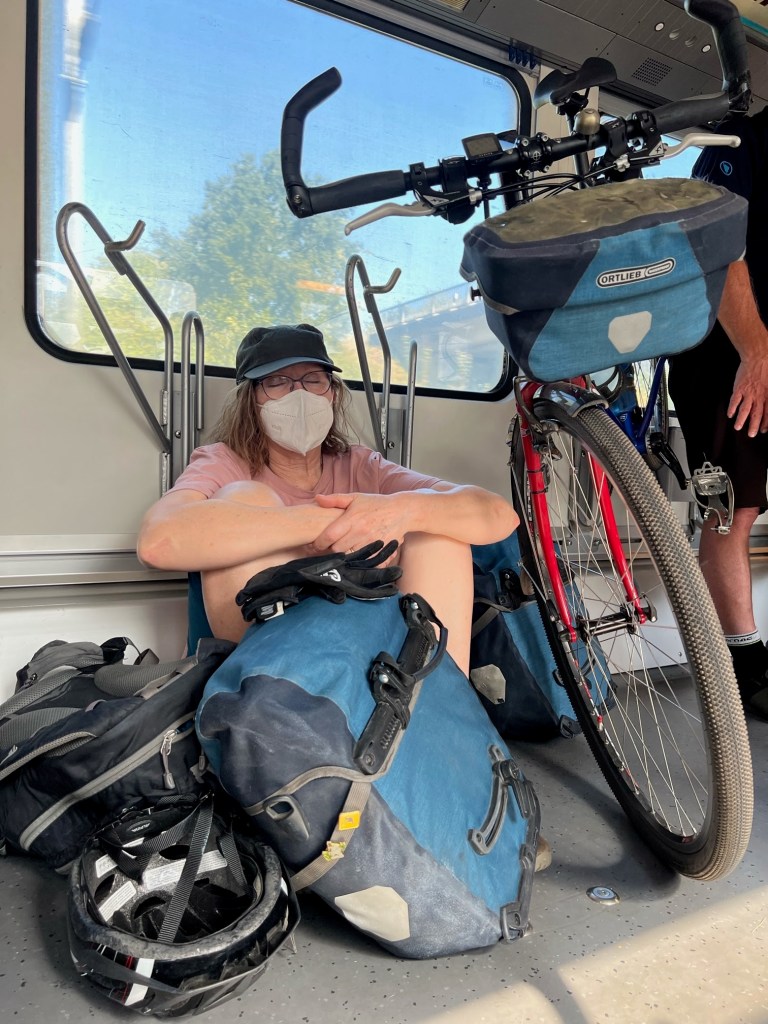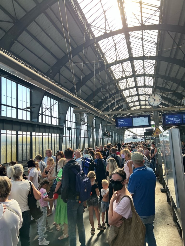 Today was meant to be a nice relaxing day. It started out fine with a leisurely breakfast and then we met Mick at the main railway station. We were taking advantage of Germanys 9 euro train deal to go anywhere. The bikes still had to have their 5euro ticket aswell.Then we tried to get the lift to the platform. We queued and queued .Mick managed to get in but then deluges of people arrived with huge suitcases, everyone was going to Hamburg on their 9 euro ticket. Tim got pushed out of the lift and gave up angrily carrying his bike up 3 flights of stairs with all his luggage on. I took my panniers off and carried my bike up. By this time the platform was getting more and more crowded, and we had no idea where the bike carriage was on the train.The train arrived late and people were struggling to disembark by sheer luck we were standing right where the bike carriage landed when the train stopped.Somehow we got on but no seats the train was packed.So no relaxing train journey .Tim and I sat on the floor Mick stood the whole way.I still wasnt prepared for the horrors of Hamburg Station.The platform was totally packed a mass of people trying to board our train as we tried to get off.Then we had to get up steps amidst the crowds. .Luckily i found an elderly lady at the top of the stairs to guard my bike whilst I went back for my panniers.I wonder if the german government were regretting their 9 euro fares it was utter chaos parents were carrying 8 year old children to protect them just crazy.We loaded our bikes back up to exit the station but the lift was out of order. A guy in a wheelchair jnformed us there was only one lift in the whole if Hamburg station working, german efficiency?? One more effort up 2 flights of stairs and we were finally in the streets of Hamburg. The train was 20 minutes late as people had struggled at every station to board the train.