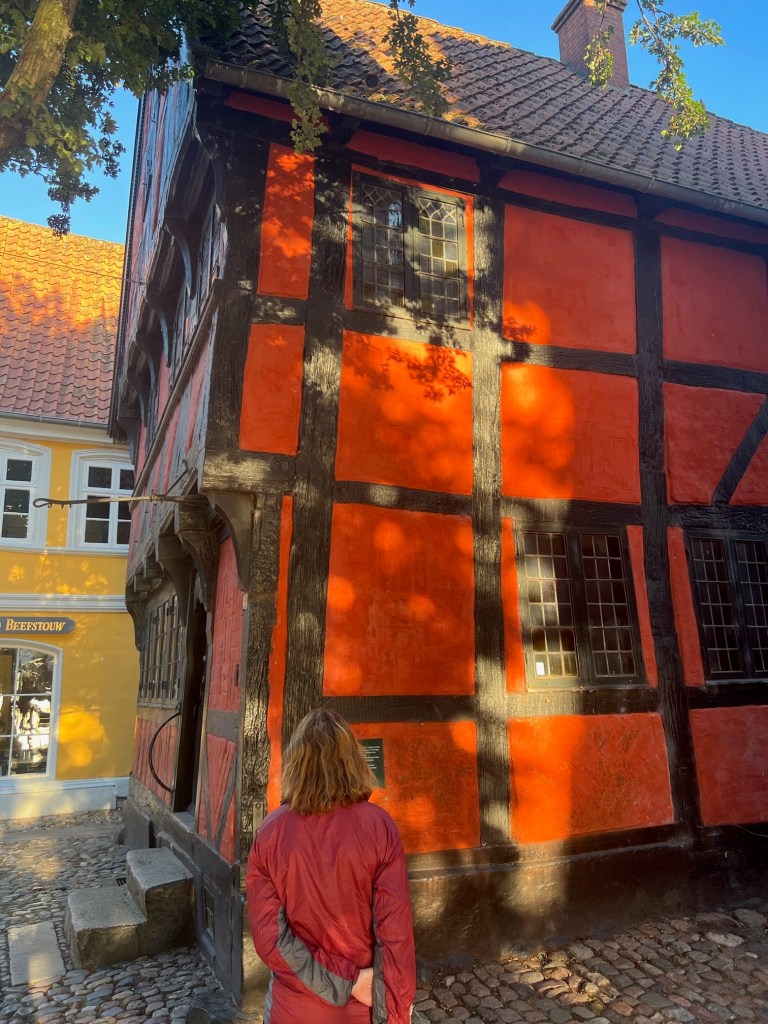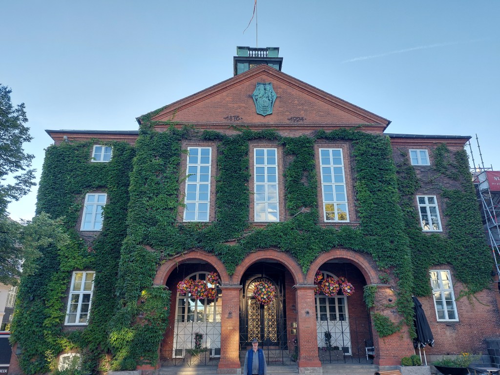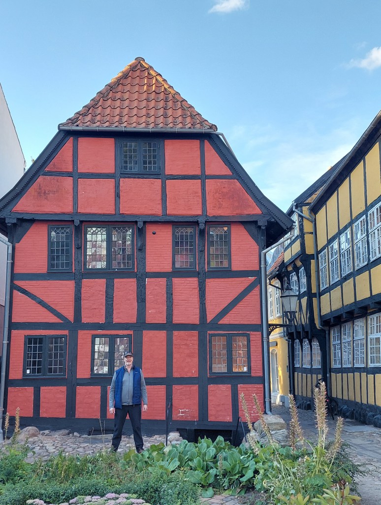 Kolding has a very historic castle as this was the old border with Germany .The castle itself burnt down except for its stables but was rebuilt in the 1970s.The town has a rusty archway used for the 100 year reunification celebrations which the king and queen Mary walked through, 2 years ago no photo Tim thought it was ugly! A few really lovely half timbered houses in the town aswell.It started its month long cultural festivities yesterday but nothing on in the streets tonight.