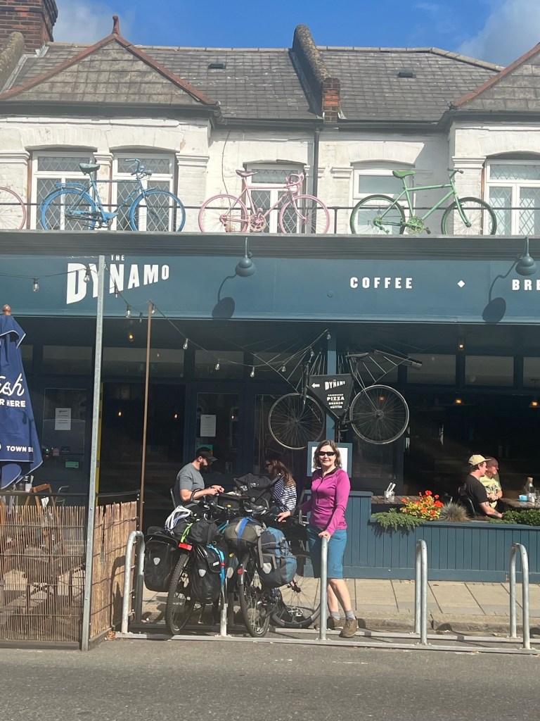 A leisurely cycle back to Putney.We stopped at our favourite bike cafe in Putney Dynamo and entertained one of the waiters with tales of our trip.He wants to do the same trip!The bikes were put away, Tim will clean and tuck them up tomorrow. And so ends another tour till next year joints and body willing!!The end of our 6th tour totalling 10,500kms cycled in Europe!