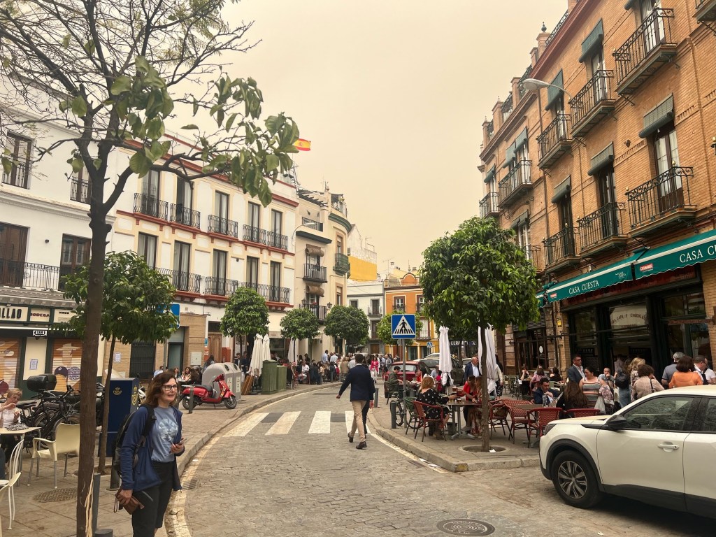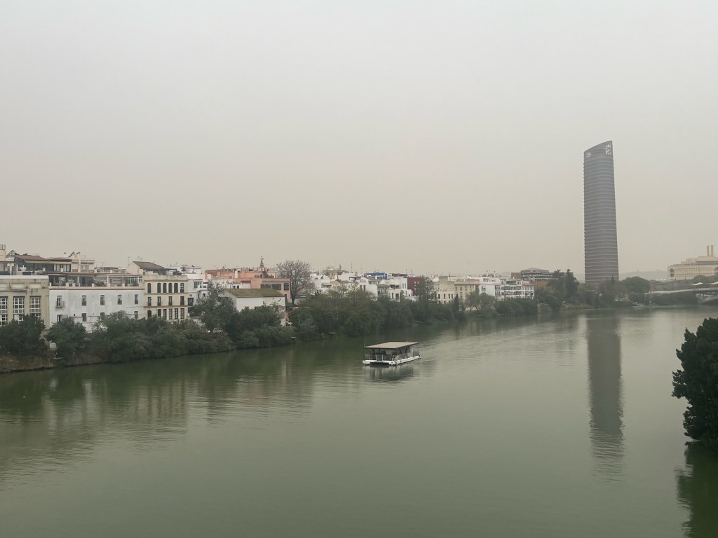We retire to our appartment heavy rain has dispersed the crowds and hopefully all that sand in the sky.Tomorrow it’s seeing the sights of Seville and catching up with friends who said they knew we would get here even if we didn’t!!