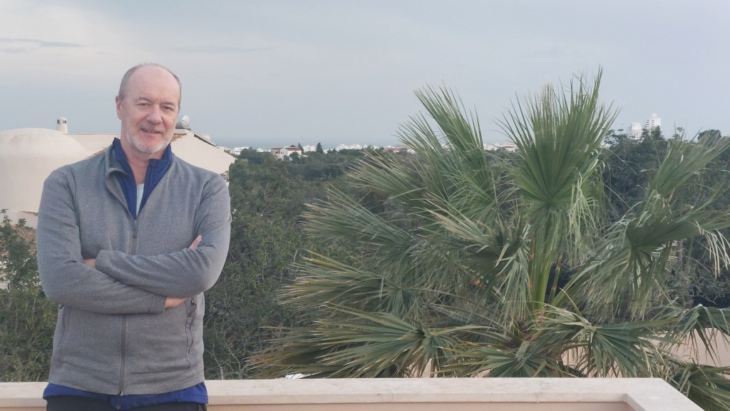 Following a wiggling cycle route meant very slow progress but we saw the rows of hotels and apartments that the Algarve is famous for.We saw glimpses of the sea and somehow missed the historic centre of Albufeiro.We were reluctant to go back as Tim was concerned re his battery power with all the hills and the wind was picking up.The beach at Albufeiro looked stunning. We went in search of lunch but couldn’t figure how to get our bikes down the steps into the marina where there were many restaurants open, yes on Easter Sunday unlike Spain.We gave up and peddled off and lo and behold there was a Steakhouse, it was a long time since we had seen any beef so in we headed.Two steaks later two very satisfied cyclists were back peddling now against a very strong headwind.We were into pretty country lanes and eventually found our guest house in the middle of nowhere. Beautiful views and a roof patio to get blown away on. The owners of Villa Estaque are French from Marseille but decided to leave Marseille because of all the crime and their guest house is similar to ones we have stayed in France and yes, we get easter eggs in our room!.And best of all a kettle, I carry teabags ever hopeful. A peaceful night ahead of us.